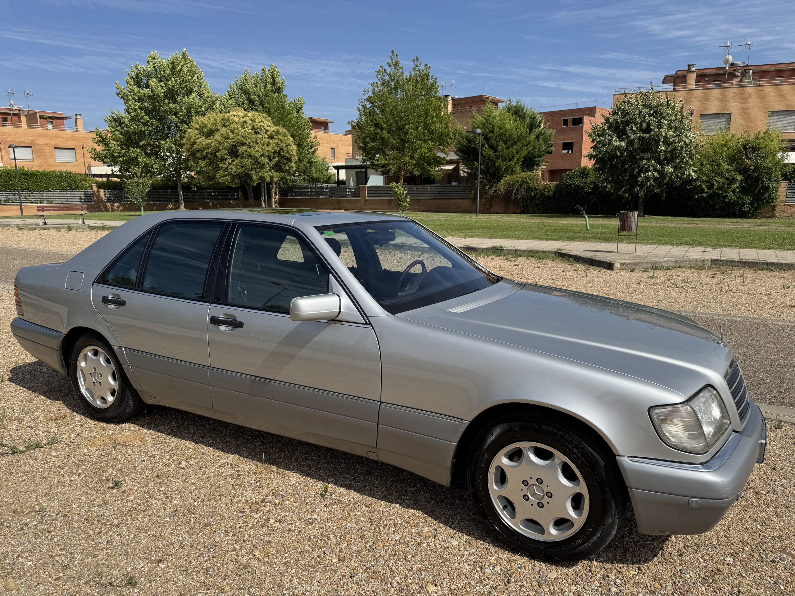 Este modelo en concreto pertenece a la legendaria generación W140, famosa por su construcción sólida, insonorización excepcional y detalles de calidad que incluso hoy sorprenden: puertas con cierre asistido, doble acristalamiento, suspensión de alta gama y un motor 5.0 V8 que ofrece potencia suave y contundente.